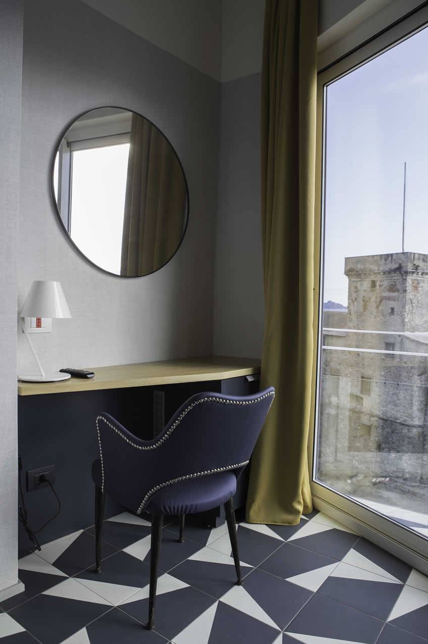 Queste camere dispongono di eleganti rifiniture e di tutti i comfort e sono dotate di balconcini che permettono di avere contemporaneamente la vista sul mare e sulla città.